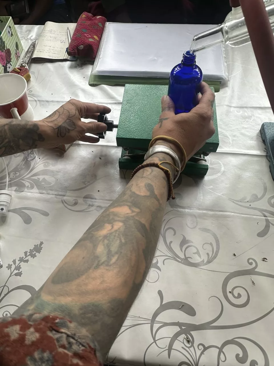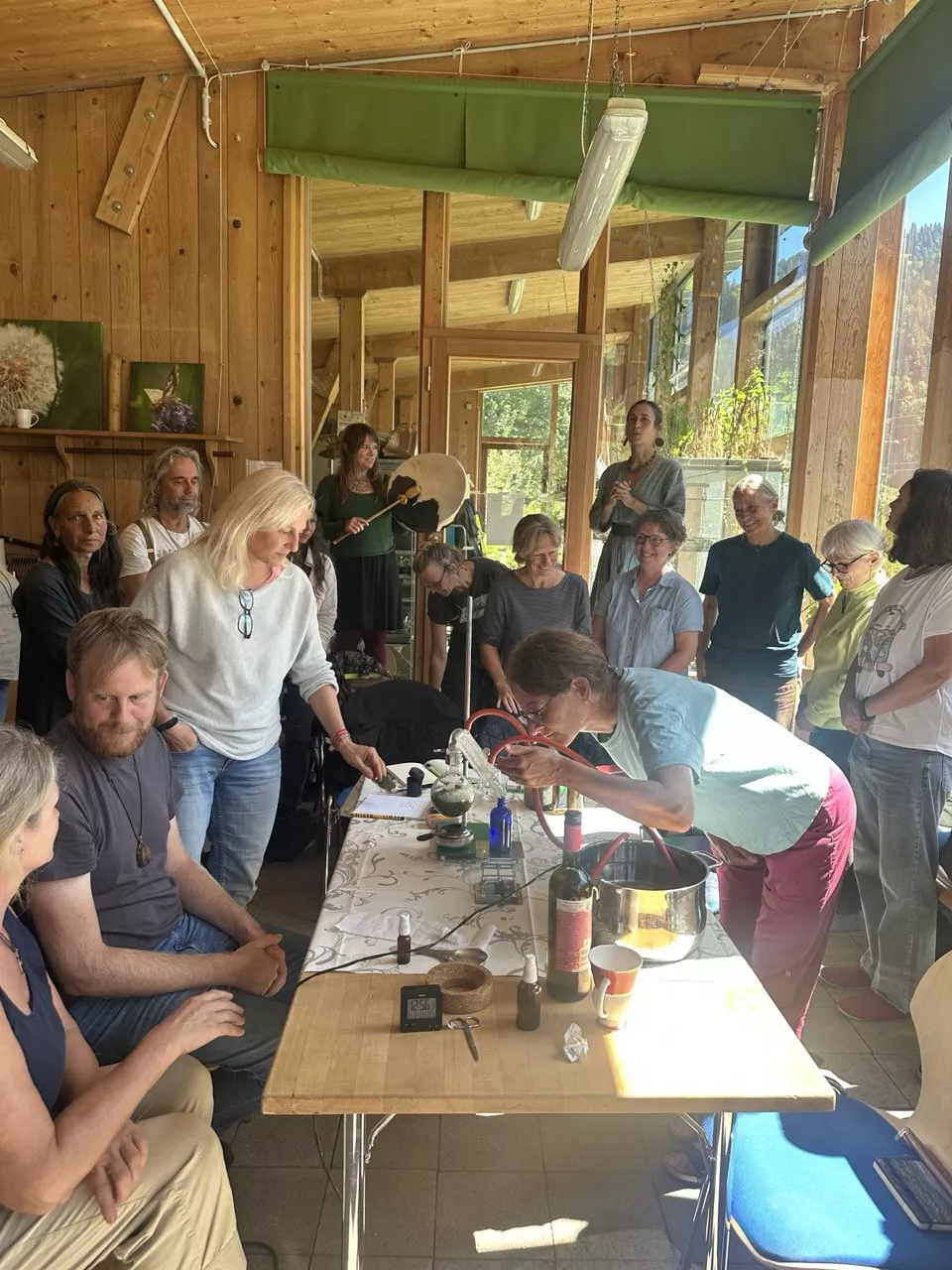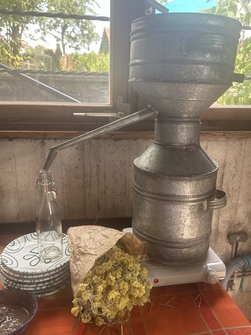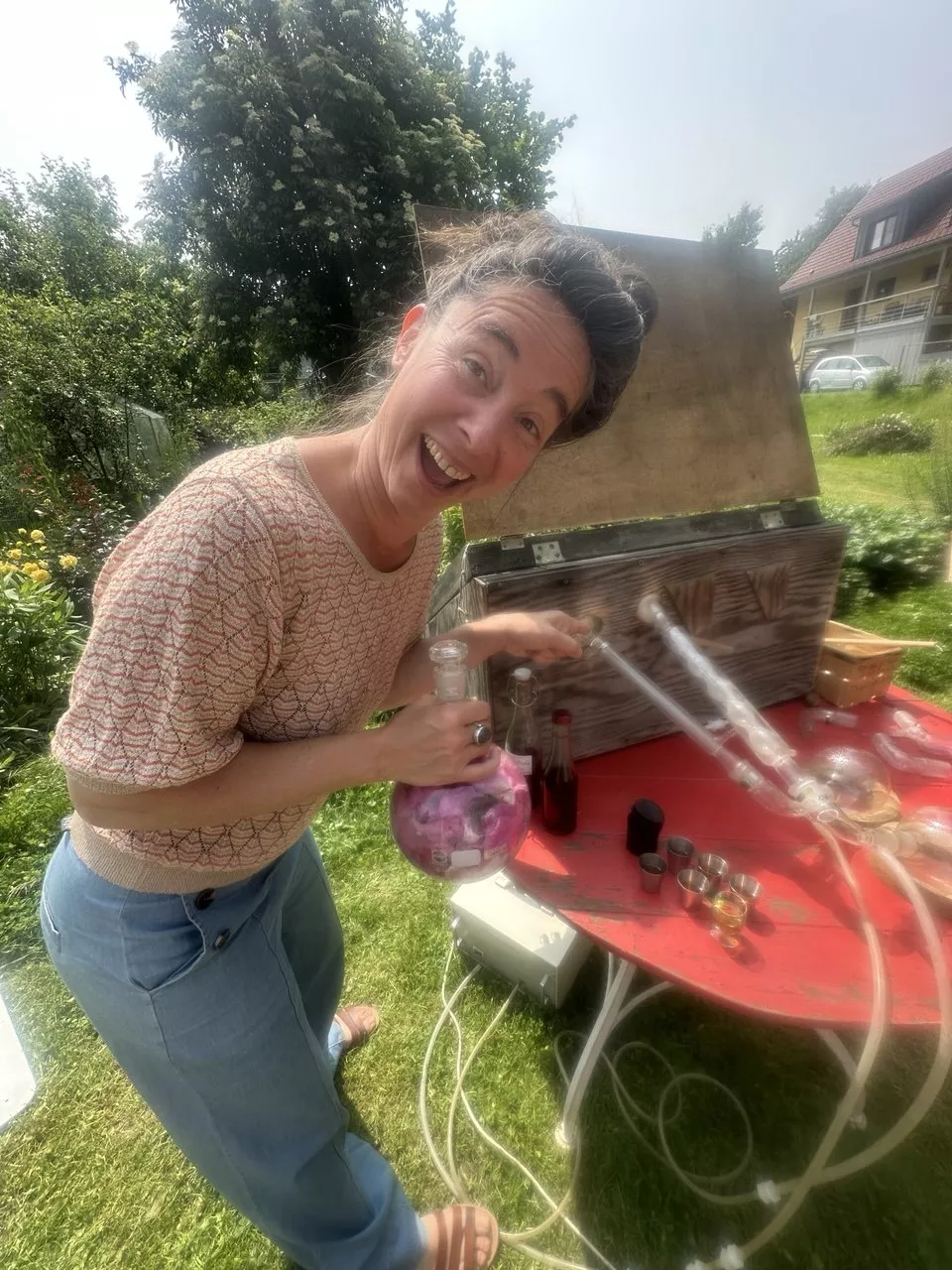Das ätherische Öl wird mit einer Pipette vom Hydrolat abgenommen.